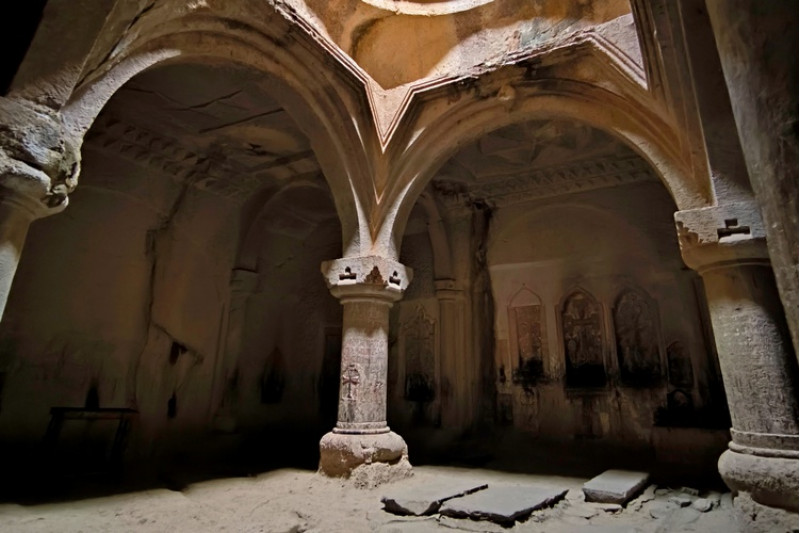 Пещерный монастырь Гегард (12 - 13 вв.) в переводе означающий «святое копье» в честь хранившегося в нем долгое время того самого копья, которым пронзили распятого Христа. Копье сейчас находится в музее Св. Эчмиадзина. Храм находится высоко в горах в ущелье реки Гохт. Это шедевр армянского средневекового зодчества. Он представляет собой комплекс, состоящий из главной церкви, двух пещерных церквей и усыпальницы. В первом пещерном храме из скалы бьет холодный родник. Считается, что его святая вода исцеляет от болезней и дает красоту. Монастырь Гегард занесен в списки Всемирного наследия ЮНЕСКО (лист 2000).