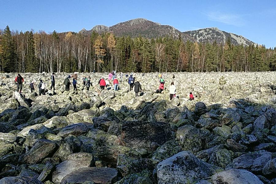Большая Каменная река - уникальный памятник, представляющий собой одну из самых крупных в мире каменных россыпей. Это масштабное нагромождение валунов кварцита и авантюрина (весом 9–10 тонн) протяженностью около 6 км и шириной до 500 м, протянувшееся среди гор. Ключевые факты о Большой Каменной реке: • Происхождение: Считается, что каменный поток образовался после схода ледника, когда глыбы разрушенных морозом скал сползли вниз по склонам. • «Звуки» реки: Под слоем огромных валунов, протекают настоящие горные ручьи, журчание которых слышно. • Масштаб: По объему камней, образующих этот поток, его иногда сравнивают с 4 пирамидами Хеопса.
