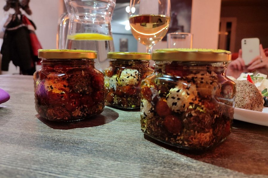 Вы попробуете (общие подачи блюд): - салат с молочной и нежной бураттой в паре с томатами и базиликом, под бользамикой; - салат шеврики и руккола, с нашей легендарной заправкой из смеси масел и специй; - Камамбер запеченный на слоеном тесте в форме солнышка, под специями или малиновым соусом; - Халлуми поджаренный до карамельной корочки, под медовым соусом;