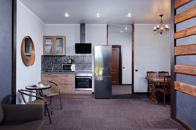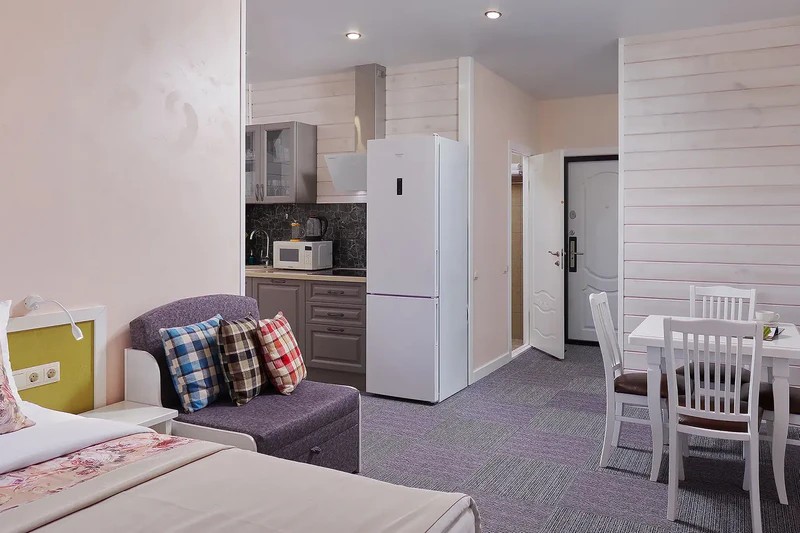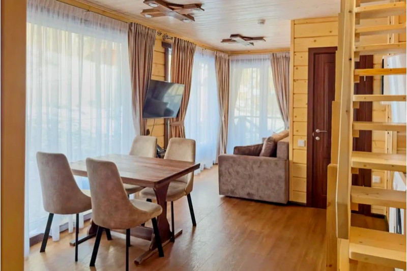 Проживание форматы размещения для любых компаний - Апартаменты категории «Шале»: Двухуровневые апартаменты с кухней и гостиной, идеальные для семейных пар и родителей с детьми; - Коттеджи: просторные отдельно стоящие дома для больших компаний и дружных семей, где у каждого есть свое пространство.